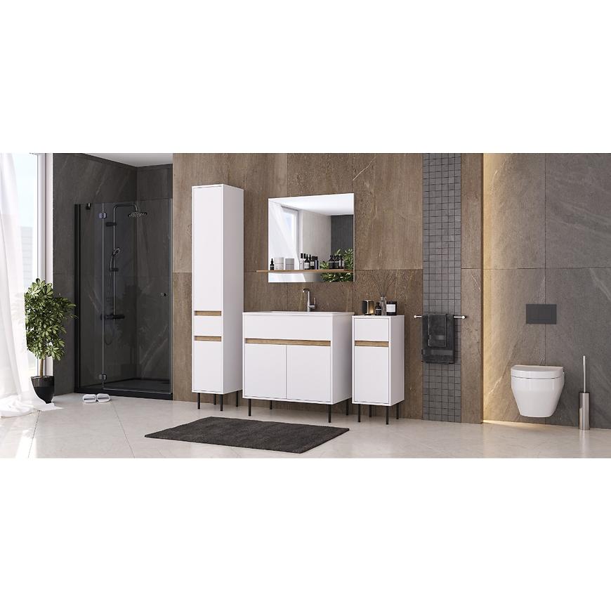 Lustro Greenland 60 białe to element z kolekcji Greenland o wymiarach 73,6 × 61,7 × 23,6 cm i wadze 10,5 kg. Wykonane zostało z płyty wiórowej, ma prostokątny kształt i biały kolor, co nadaje mu uniwersalny, elegancki wygląd. Idealnie sprawdzi się w łazience, zapewniając funkcjonalność oraz estetyczne wykończenie wnętrza.