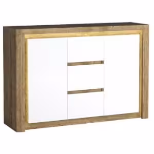 Kolekcja mebli do pokoju dziennego Livinio jest symbolem harmonii pomiędzy nowoczesnym designem, a klasycznym pięknem. Wykonane z trwałej płyty wiórowej laminowanej, meble prezentują się w eleganckim dekorze białego połysku z subtelnie uwypuklającymi elementami w kolorze ribbeck. Fronty mebli w błyszczącym wykończeniu dodają im luksusowego charakteru, podczas gdy matowe korpusy tworzą harmonijny kontrast.