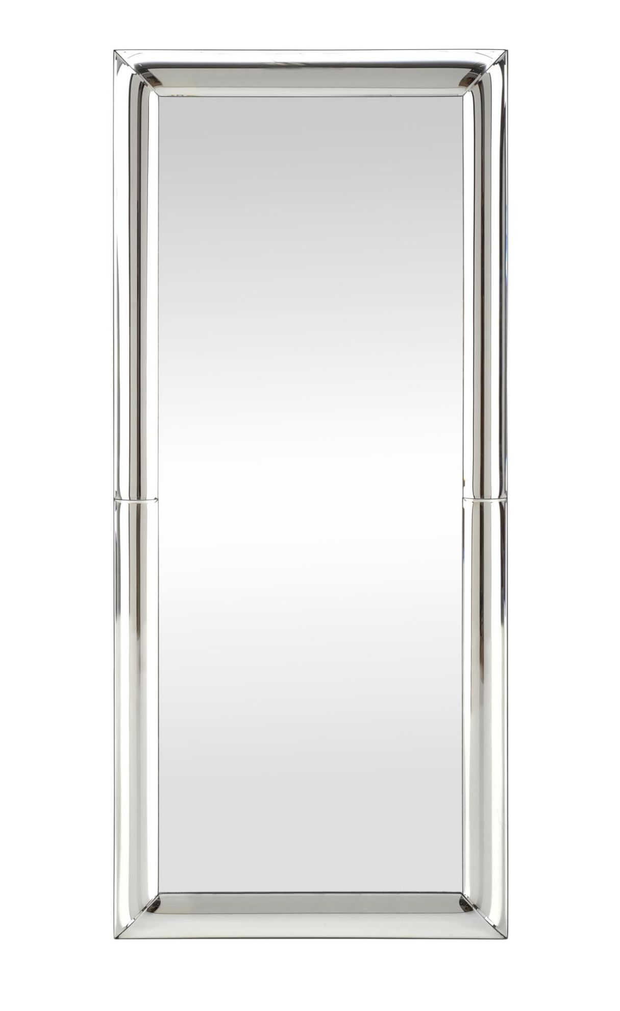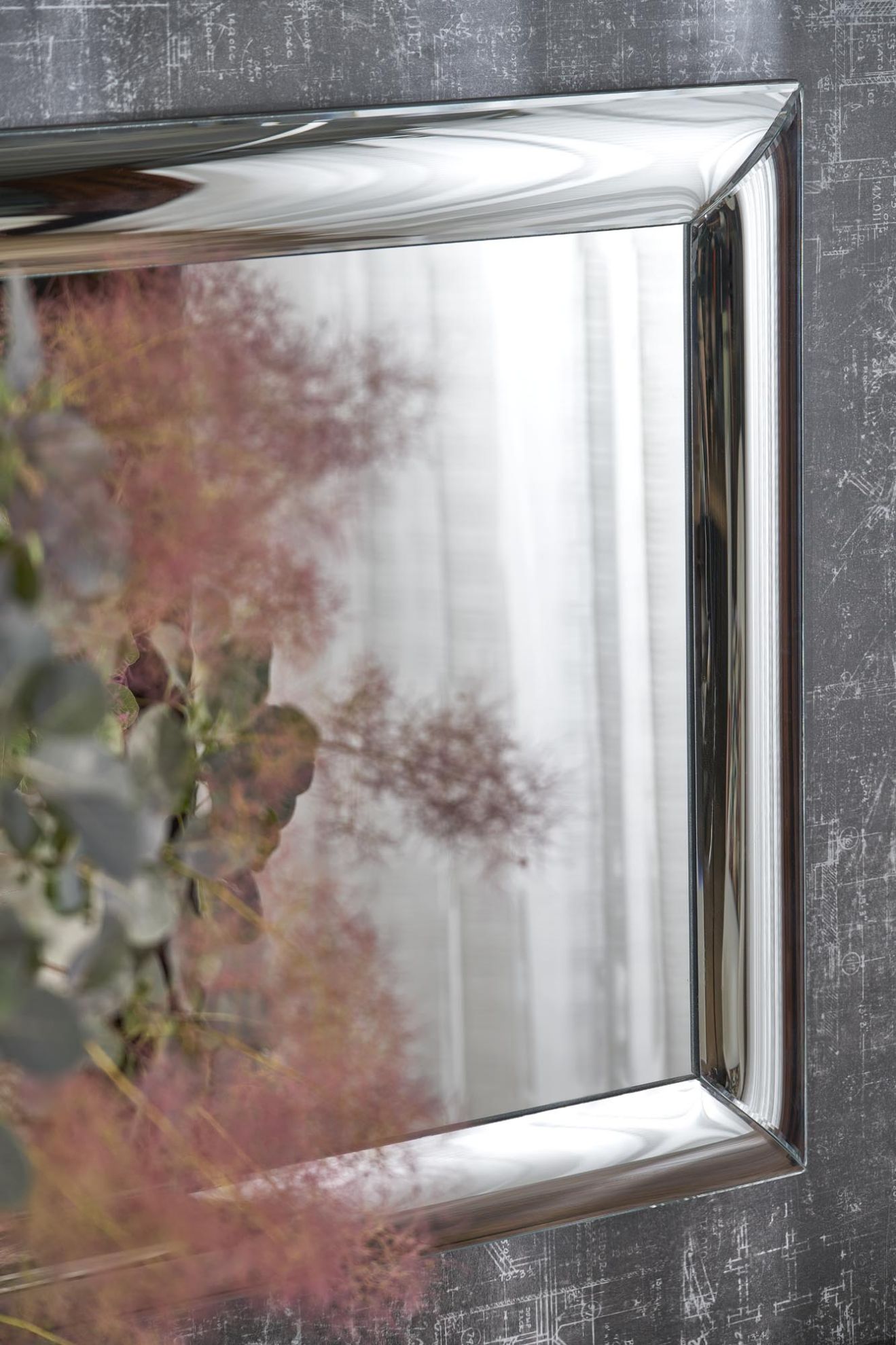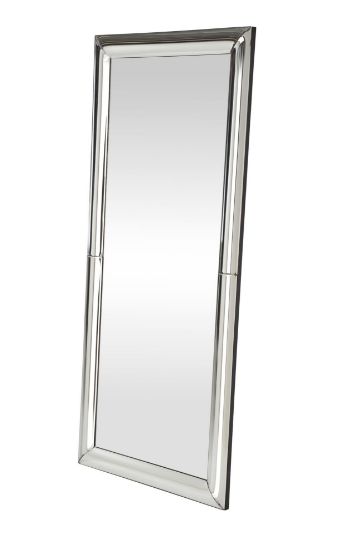 Srebrne lustro ścienne z fazowaną ramą ze szkła giętego