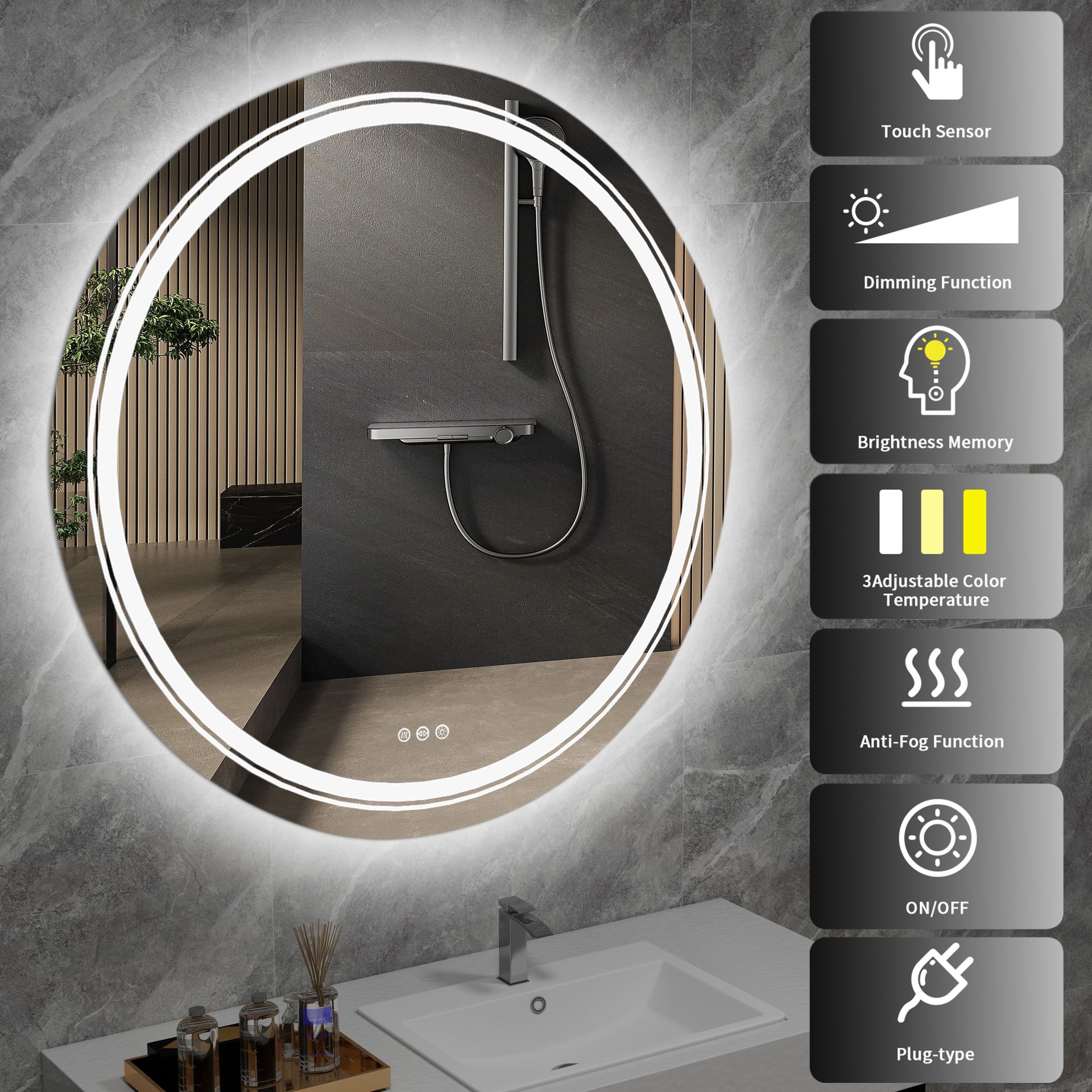 Zastosowane podświetlenie LED gwarantuje równomierne i energooszczędne oświetlenie twarzy, ułatwiając codzienną pielęgnację oraz wykonywanie makijażu. Lustro z regulacją jasności pozwala dopasować natężenie światła do aktualnych potrzeb użytkownika. Możliwość wyboru światła zimnego lub ciepłego sprawia, że lustro LED do łazienki pozwala stworzyć odpowiedni klimat w pomieszczeniu oraz zapewnia komfortowe warunki podczas porannej i wieczornej rutyny.