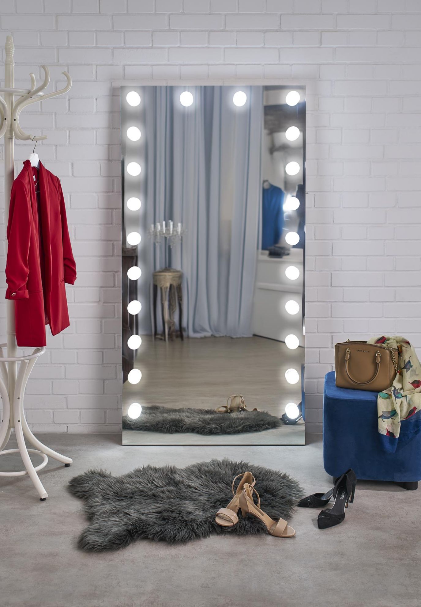 Nowoczesne lustro stojące z oświetleniem LED