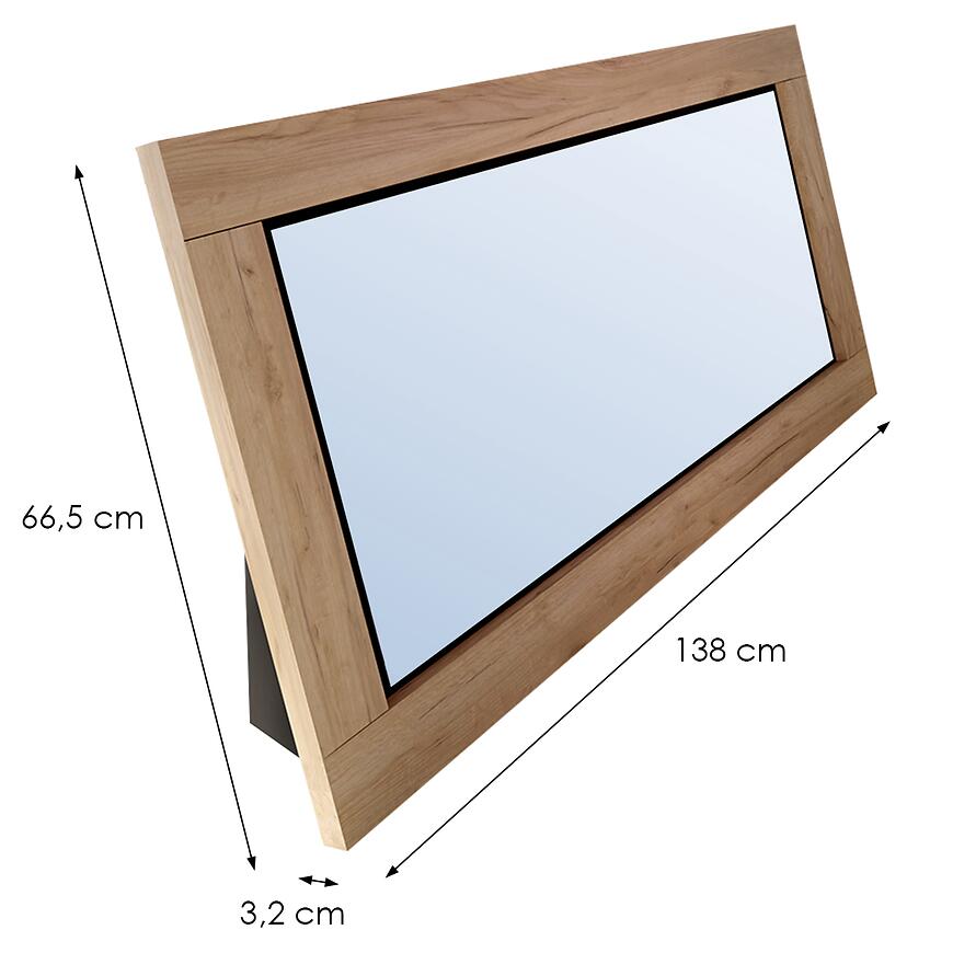 Lustro Vemo Stojące Poziome w kolorze Dąb Craft Złoty to nowoczesne lustro o prostokątnym kształcie. Jego wymiary to 66,5 cm szerokości i 138 cm wysokości, a głębokość ramy wynosi 3,2 cm. Wykonane z laminowanej płyty wiórowej, waży 19,5 kg, nie posiada oświetlenia i przeznaczone jest do ustawienia w pozycji stojącej.