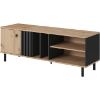 Korpus i fronty szafki RTV wykonane w wybarwieniu dąb artisan z antracytowymi wstawkami. Szafka RTV Madis posiada 2 pojemne szuflady oraz drzwi, za którymi znajduje się dodatkowe miejsce do przechowywania. Całość została wykonana z płyty wiórowej laminowanej. Produkt do samodzielnego montażu. Idealnie wpasuje się w aranżacje w stylu nowoczesnym, ale także w loftowym.