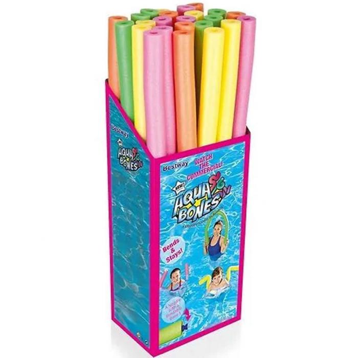 Makaron z pianki o długości 122 cm to pianka poli(oksymetylenowa), podatna na odkształcenia. która zapewnia dodatkową wyporność, jeśli umieszczony pod pachami. Zachowuje każdy nadany mu kształt, które wydają głośne, imitujące pękanie odgłosy. Każdy makaron Aqua Bone posiada 58 blokujące złącza. Idealny do pływania, chlapania, tworzenia fal, a nawet do ćwiczeń.