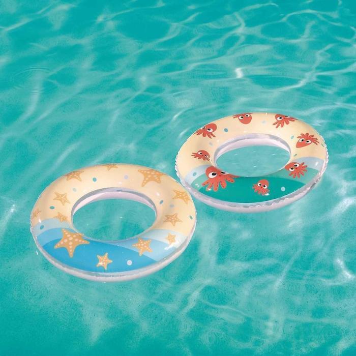 Małe koło do pływania śr.61CM 36014 może okazać się świetną atrakcją basenową dla dzieci. Miękki materiał nie powoduje otarć. Koło można używać zarówno w basenie, jak i w jeziorze. Przeznaczone dla dzieci najlepiej w wieku 3-6 lat, ale tylko na małej głębokości pod nadzorem rodziców.