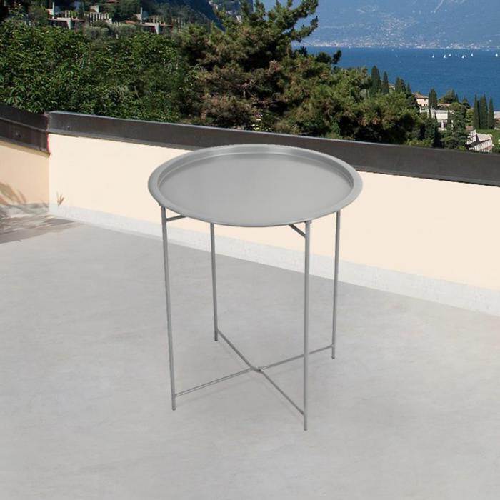 Mały składany stolik 52x46cm idealnie nada się na mały balkonik czy do większego ogrodu jako mały, kawowy stoliczek czy podstawka na kwiat. Stolik składany, metalowy, ocynkowany.