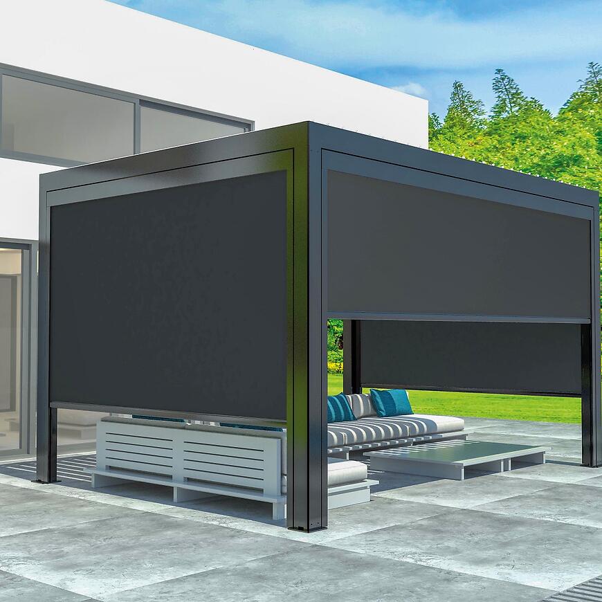 Markiza boczna Luxe Manual o wymiarach 270 × 218 cm, przeznaczona do pergoli 3 × 3 m lub 3 × 4 m, z ręcznym sterowaniem. Wykonana z trwałego materiału typu sunshine fabric (30% poliester, 70% PVC), odpornego na warunki atmosferyczne, zapewnia praktyczne i estetyczne częściowe zabudowanie pergoli. Idealna do stworzenia przytulnej przestrzeni do wypoczynku na świeżym powietrzu przez cały sezon, łącząc funkcjonalność z nowoczesnym designem.