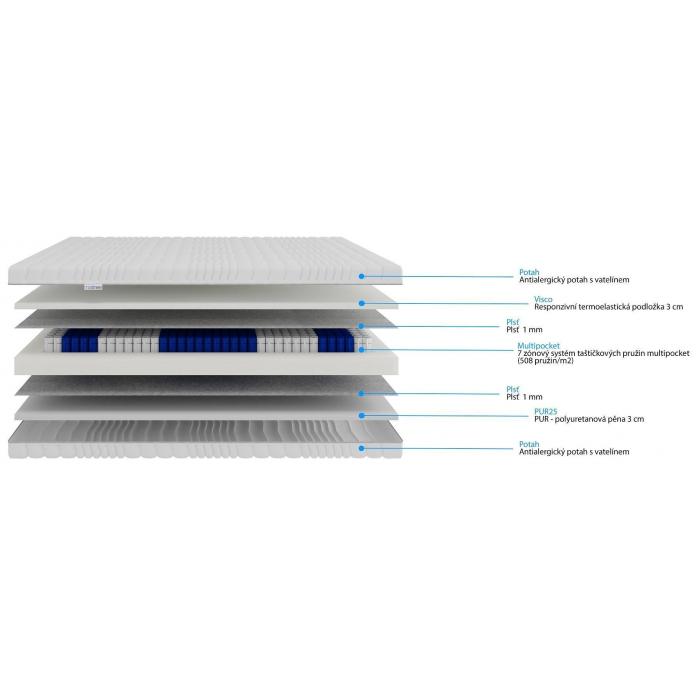Konstrukcja materaca: 3 cm Visco | filc | multipocket | filc | 3 cm PU25