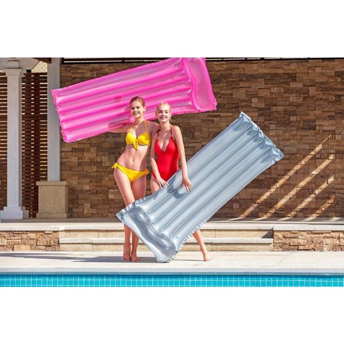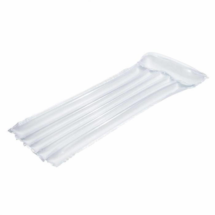 Materac dmuchany, który przyda się nad wodą lub na basenie. Posiada dwie komory powietrzne i wyprofilowany projekt poduszki. W zestawie: jedna mata, łatka do naprawy.
