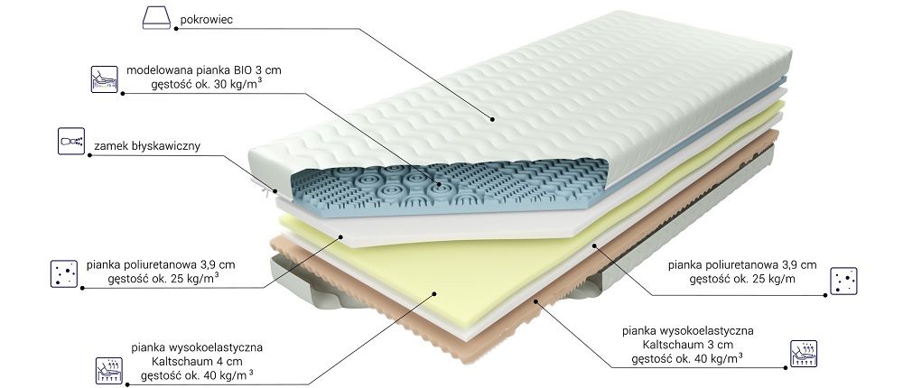 pięciowarstwowa konstrukcja z wysokiej jakości pianek,