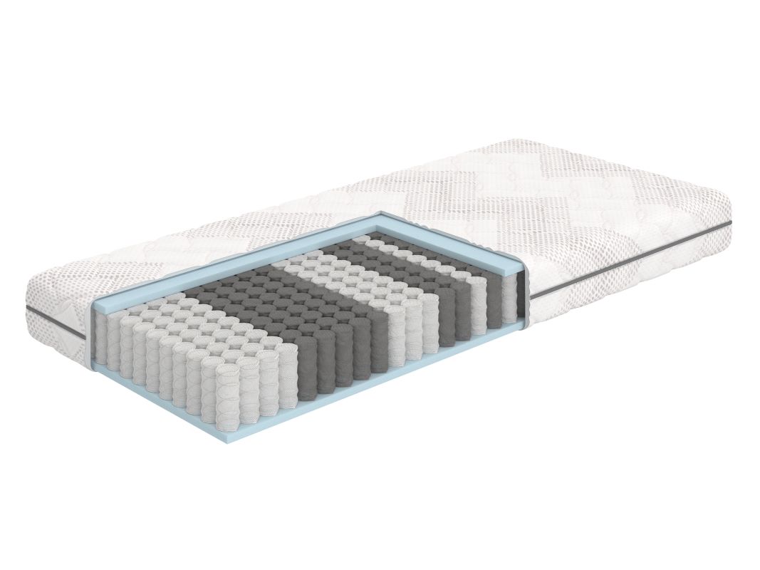 Materac Goldenstar jest idealną propozycją dla miłośników twardych materacy. To materac posiadający sprężyny kieszeniowe oraz 7 stref twardości. Materac dostosowywuje się do ułożenia ciała i umożliwia prawidłowe podparcie kręgosłupa. Warstwa zewnętrzna materaca - obustronnie pianka poliuretanowa 2cm. Pokrowiec jest pikowany, wykonany z dzianiny antyalergicznej zawierającej srebrną nić o właściwościach antybakteryjnych. Pokrowiec można zdejmować, jest przeznaczony do prania w temperaturze 60 stopni. Zamek błyskawiczny umożliwia rozpinanie pokrowca na dwie osobne części. Twardość materaca 2 (twardy).