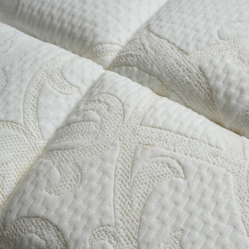 - Pokrowiec: Wykonany z wyjątkowo miękkiej mieszanki 99% poliestru i 1% spandeksu (gramatura 330 g/m²), pokrowiec jest przyjemny w dotyku, a dodatkowa warstwa owaty (180 g/m²) z bawełny (43%) i poliestru (57%) dba o doskonałą cyrkulację powietrza oraz skuteczne odprowadzanie wilgoci.