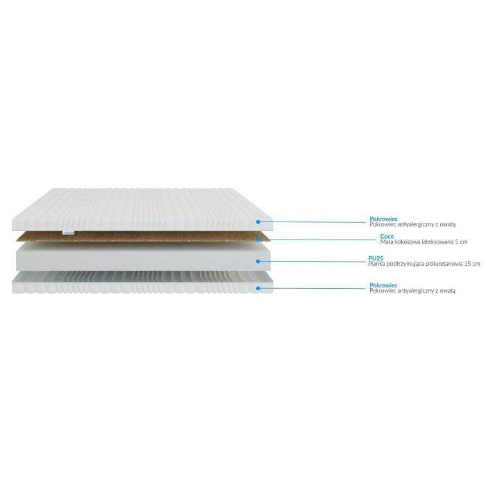 Konstrukcja materaca: 1 cm coco | 15 cm PU25