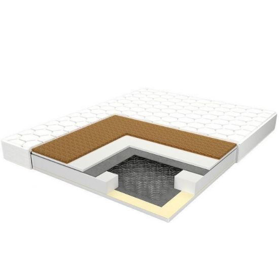 Wkład: ze sprężyn bonelowych, z wysokogatunkowego drutu 2,2 mm. Wkład w materacu: jednostronnym obłożony jest z jednej strony lateksowaną płytą kokosu, pianką poliuretanową T25-15 mm oraz przekładką tapicerską, a zdrugiej warstwą przekładki tapicerskiej i pianką poliuretanową T25-20 mm o zwiększonej sprężystości. Dwustronny obłożony jest lateksowaną płytą kokosu, pianką T25-15 mm oraz przekładką tapicerską. pokrowiec: wykonany z materiału obiciowego (62 % polipropylen, 38 % poliester) - pikowany dwustronnie antyalergiczną owatą 80 g/m2. Cechy szczególne: materac twardy dzięki zastosowaniu lateksowanej płyty kokosu. Wymagany stelaż elastyczny NV o odpowiednim rozstawie listew: np. Birkflex Duoflex, Twinflex, Trioflex, Twinpack.