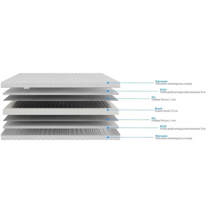 Konstrukcja materaca: 3 cm PU25 | felt | bonell | felt | 3 cm PU25