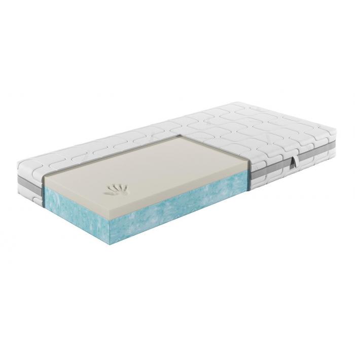 Materac termoelastyczny PANDA. Dwuwarstwowy, termoelastyczny materac piankowy z 2 różnymi stronami użytkowymi. Podstawę materaca stanowi sprężysta i oddychająca pianka poliuretanowa 14 cm, połączona z pianką termoelastyczną 6 cm. Pianka termoelastyczną dopasowuje się do ciała pod wpływem ciepła i zapewnia idealne podparcie dla kręgosłupa. Pokrowiec materaca jest wykonany z dzianiny BAMBOO zawierającej wiskozę bambusową, która odprowadza nadmiar ciepła i wilgoci. Pokrowiec jest obustronnie pikowany i przeznaczony do prania w 60C. Zamek błyskawiczny umożliwia rozpinanie pokrowca na dwie osobne części.