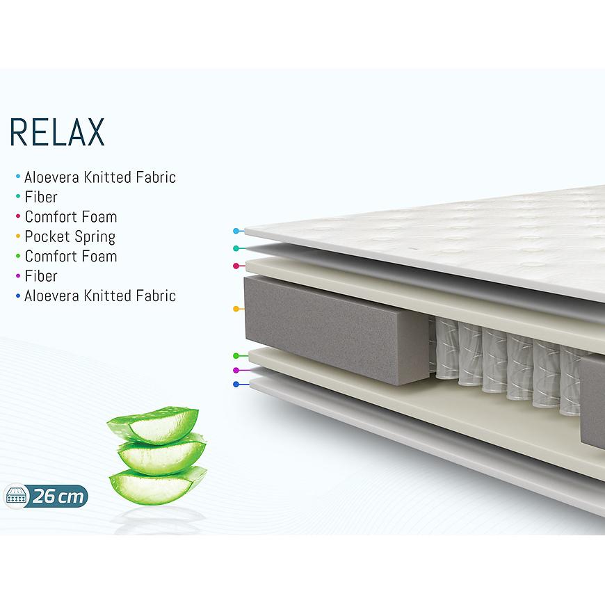 Dzięki ergonomicznej konstrukcji, materac Relax doskonale dopasowuje się do kształtu ciała, zapewniając idealne podparcie dla kręgosłupa i redukując nacisk na plecy, talię i szyję. System sprężyn kieszeniowych oraz warstwa Hyper-soft sprawiają, że sen staje się jeszcze bardziej komfortowy, a użytkownik może cieszyć się głębokim i zdrowym snem.