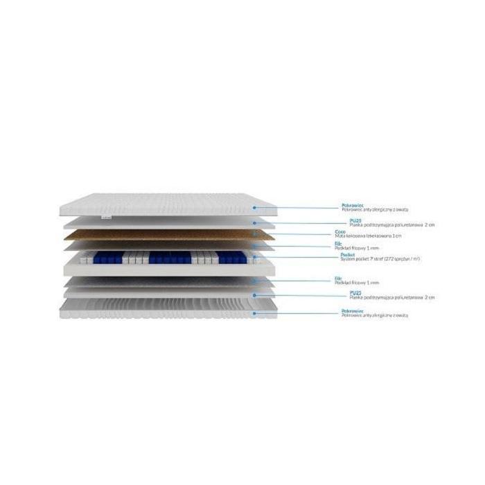 Konstrukcja materaca: 2 cm PU25| 1 cm coco | felt | pocket | felt | 2 cm PU25