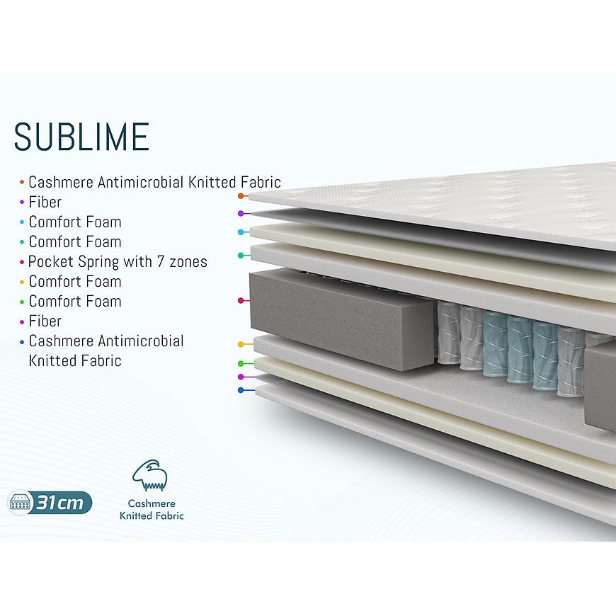 Jedną z głównych cech Materaca Sublime Rodeo Drive jest jego pokrowiec kaszmirowy, który nie tylko prezentuje się luksusowo, ale także oferuje niezwykłą miękkość i przyjemność w dotyku. Dodatkowo, kaszmir posiada właściwości antybakteryjne, dbając o higienę materaca i zapewniając zdrowy sen.
