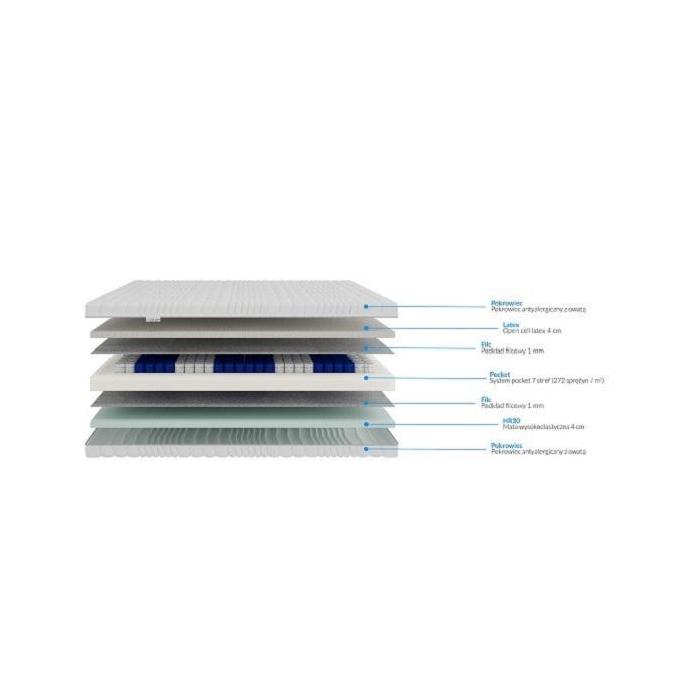 Konstrukcja materaca: 4 cm Latex | felt | pocket | felt | 4 cm HR30