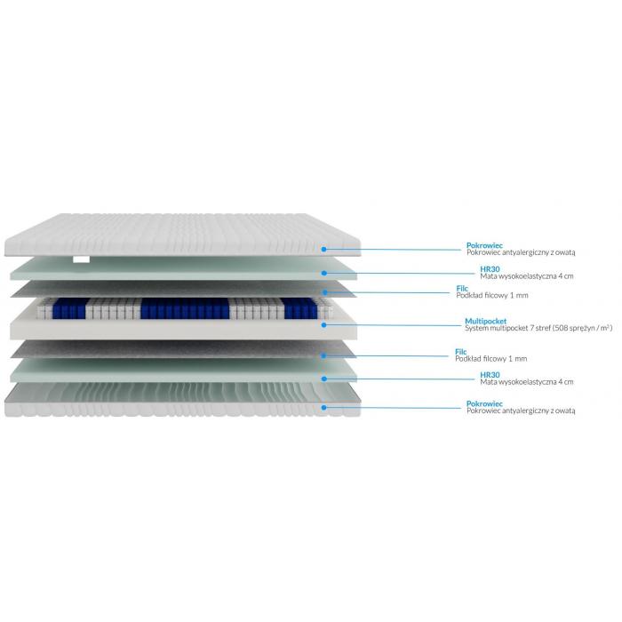 Konstrukcja materaca: 4 cm HR30 | filc | multipocket | filc| 4 cm HR30