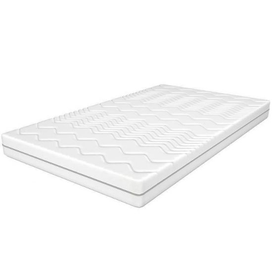 Wkład materaca wykonany jest z trzech warstw pianki: - pianka termoelastyczna 3 cm reagująca na temperaturę i ciężar ciała, pianka poliuretanowa T-35 grubości 4 cm o podwyższonej sprężystości, pianki poliuretanowa T-25 grubości 8 cm o podwyższonej sprężystości.Wykonanym z materiału z frotty białej (70 % bawełna, 30 % polipropylen), obustronnie pikowanej antyalergiczną owatą 200g/m2.