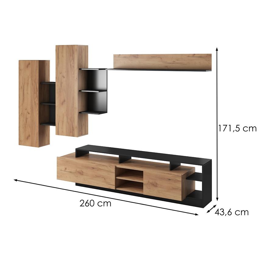 Meblościanka Alva dąb craft/antracyt to znakomity przykład połączenia nowoczesnego designu, funkcjonalności i elegancji. Z wysokością 171,5 cm, szerokością 260 cm i głębokością 43,6 cm, ten wyjątkowy mebel doskonale wpisuje się w trendy współczesnego wystroju wnętrz.