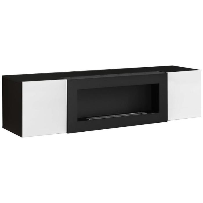 Meblościanka z biokominkiem Fly M2 + Szkło Biały/Czarny to nowoczesny i funkcjonalny mebel, który łączy elegancję z praktycznym zastosowaniem. Wykonana z płyty MDF i płyty wiórowej laminowanej, wyróżnia się solidną konstrukcją i trwałością. Fronty w białym i czarnym połysku w połączeniu z matowym czarnym korpusem nadają meblościance nowoczesnego charakteru i efektowny wygląd, tworząc przyciągający wzrok element wyposażenia wnętrza.