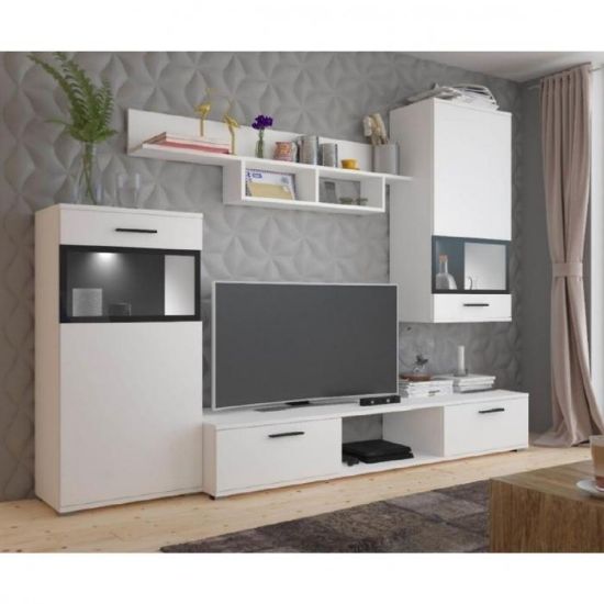 Utrzymana w delikatnej bieli meblościanka z kolekcji BLUES będzie ozdobą każdego pokoju dziennego. Zestaw składa się z czterech odrębnych brył, które z pewnością pomieszczą rzeczy codziennego użytku. Meble wchodzące w skład kompletu zostały wyposażone w stylowe uchwyty, które dopełniają całość designu mebli. Sprawdź także pozostałe modele szafek wchodzących w skład kolekcji BLUES.