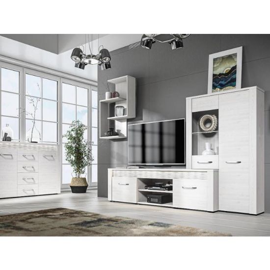 Kolekcja mebli do pokoju dziennego Clermont to harmonijne połączenie wyrafinowanego uroku sosny śnieżnej z funkcjonalnością i estetyką, wykonane z trwałej płyty wiórowej laminowanej i MDF. Meble z tej kolekcji stanowią doskonały wybór dla osób poszukujących mebli o eleganckim wykończeniu i wysokiej jakości wykonania.