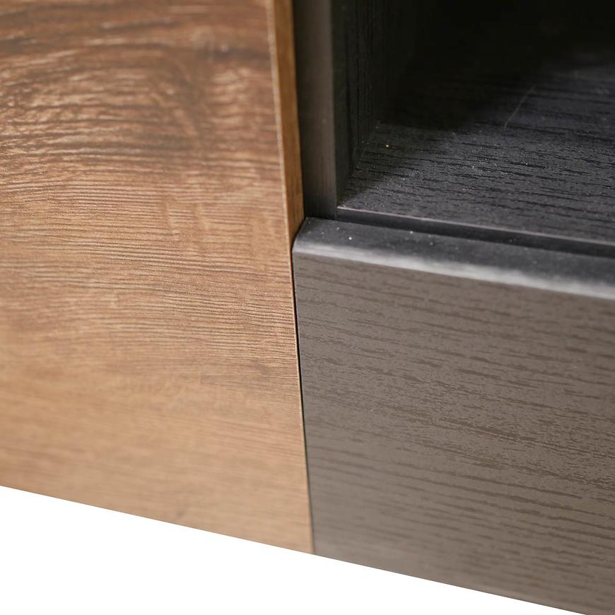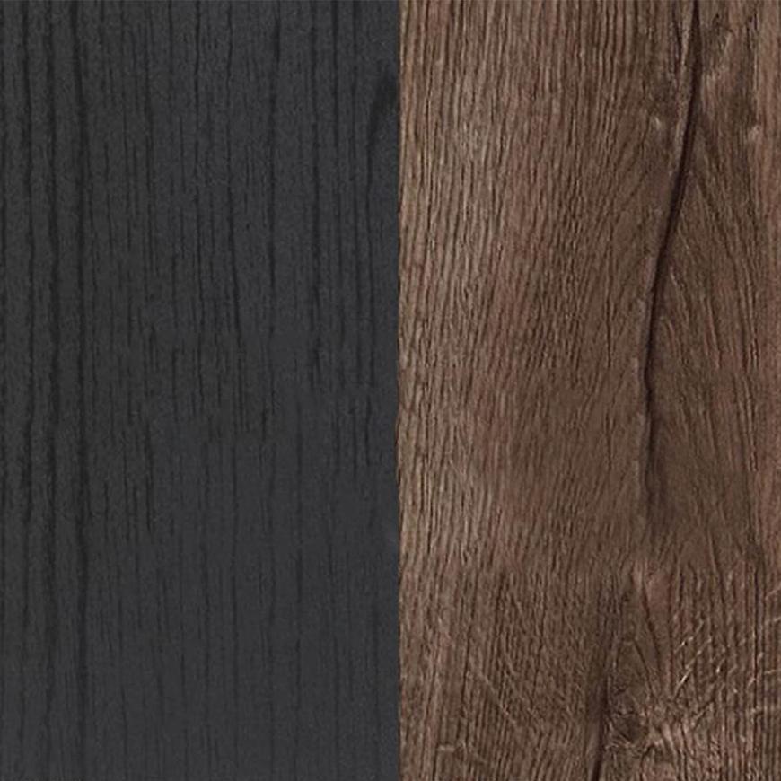 Dekor w dwóch odcieniach dębu w połączeniu z matowym wykończeniem nadają meblościance klasycznego charakteru. Zarówno fronty, jak i korpus meblościanki są wykonane z wysokiej jakości płyty wiórowej laminowanej, co gwarantuje trwałość i odporność na uszkodzenia.