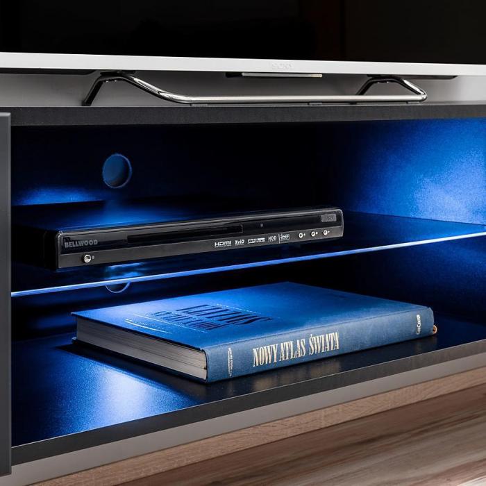 Jest to meblościanka, która wpasuje się w większość aranżacji nadając pomieszczeniu nowoczesny i elegancki design.