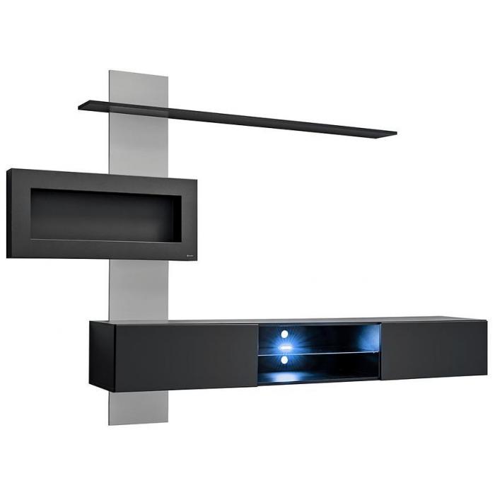W skład kolekcji Flame wchodzi niezwykle atrakcyjna meblościanka, która oferuje znacznie więcej niż standardowe rozwiązania. Półka ścienna tworzy miejsce na dekoracje i eksponowane przedmioty, a podwieszana szafka RTV gwarantuje ergonomiczne rozwiązanie dla sprzętu multimedialnego.