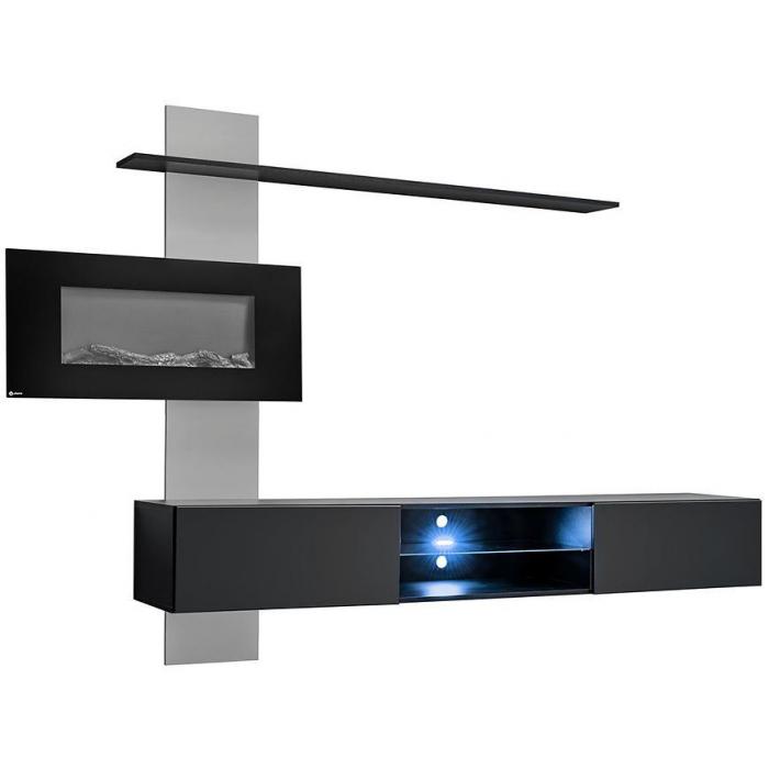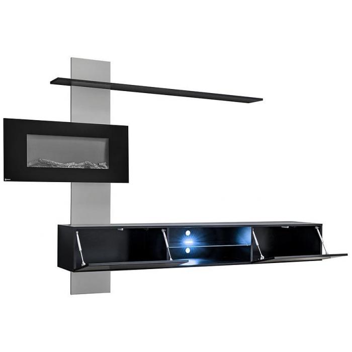 W skład kolekcji Flame wchodzi niezwykle atrakcyjna meblościanka, która oferuje znacznie więcej niż standardowe rozwiązania. Półka ścienna tworzy miejsce na dekoracje i eksponowane przedmioty, a podwieszana szafka RTV gwarantuje ergonomiczne rozwiązanie dla sprzętu multimedialnego.