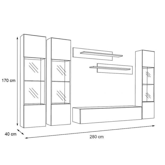 Meblościanka Fly to idealne rozwiązanie do małych pomieszczeń i nie tylko. Szafka pod tv, witryny oraz półki tworzą meblościankę wisząca. Fronty mebli w połysku nadadzą salonowi nowoczesności i elegancji.