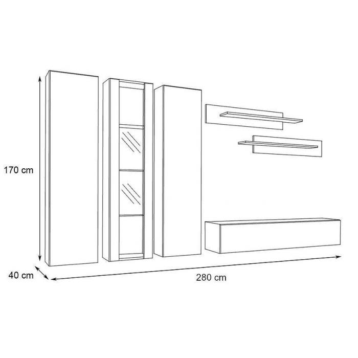 Meblościanka Fly to idealne rozwiązanie do małych pomieszczeń i nie tylko. Szafka pod tv, witryny oraz półki tworzą meblościankę wisząca. Fronty mebli w połysku nadadzą salonowi nowoczesności i elegancji.