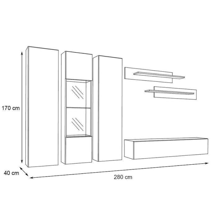 Meblościanka Fly to idealne rozwiązanie do małych pomieszczeń i nie tylko. Szafka pod tv, witryny oraz półki tworzą meblościankę wisząca. Fronty mebli w połysku nadadzą salonowi nowoczesności i elegancji.