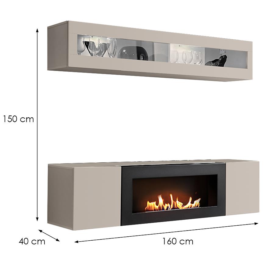 Meblościanka Fly Cc Fy N2 Kaszmir/Biokominek to nowoczesna propozycja do salonu, łącząca minimalistyczną formę z praktyczną funkcjonalnością. Jasne, beżowe wybarwienie w odcieniu kaszmiru zestawione z czarnymi akcentami nadaje całości elegancji i subtelnej nowoczesności, idealnie wpisując się w aktualne trendy wnętrzarskie.
