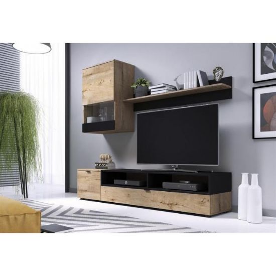 Meblościanka Gard dąb lefkas/czarny to nowoczesny i funkcjonalny mebel, który łączy elegancję z praktycznym zastosowaniem. Wykonana z płyty meblowej okleinowanej zarówno w korpusie, jak i frontach, zapewnia trwałość i solidność konstrukcji. Połączenie dębu lefkas i czerni w matowym wykończeniu nadaje meblościance nowoczesny, stylowy wygląd, który doskonale komponuje się z różnymi aranżacjami wnętrz.