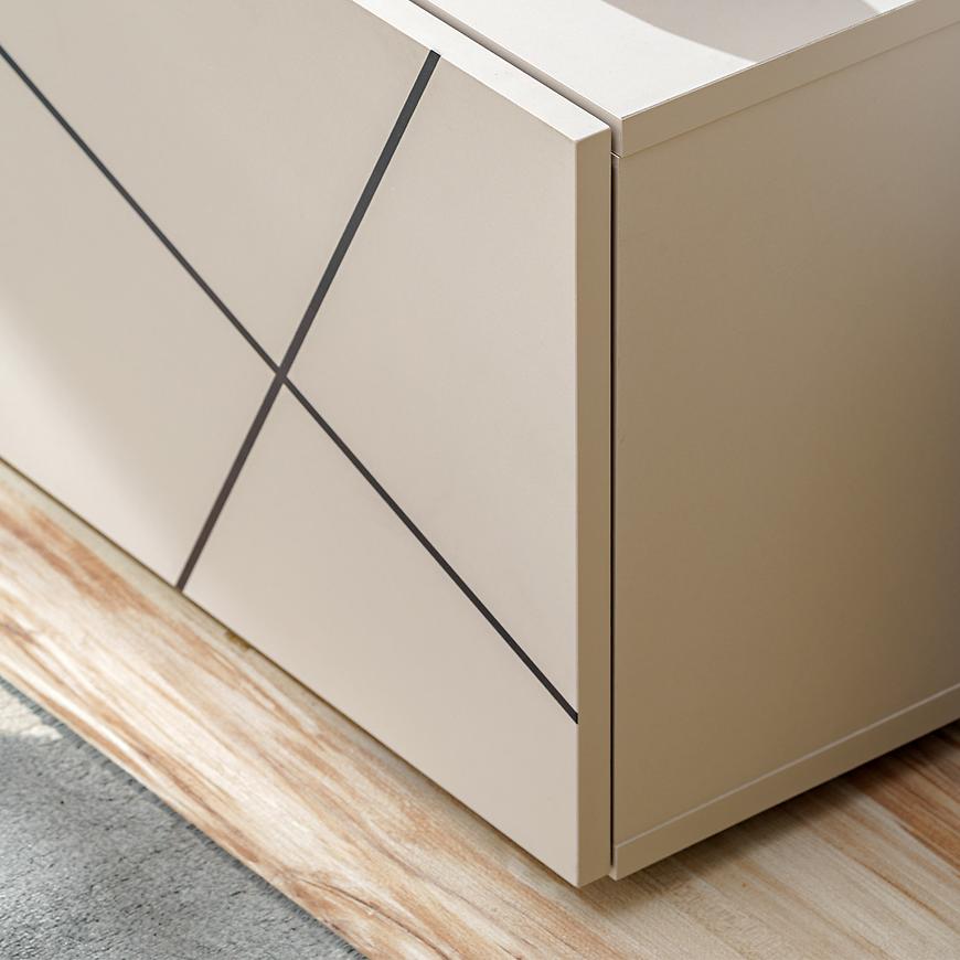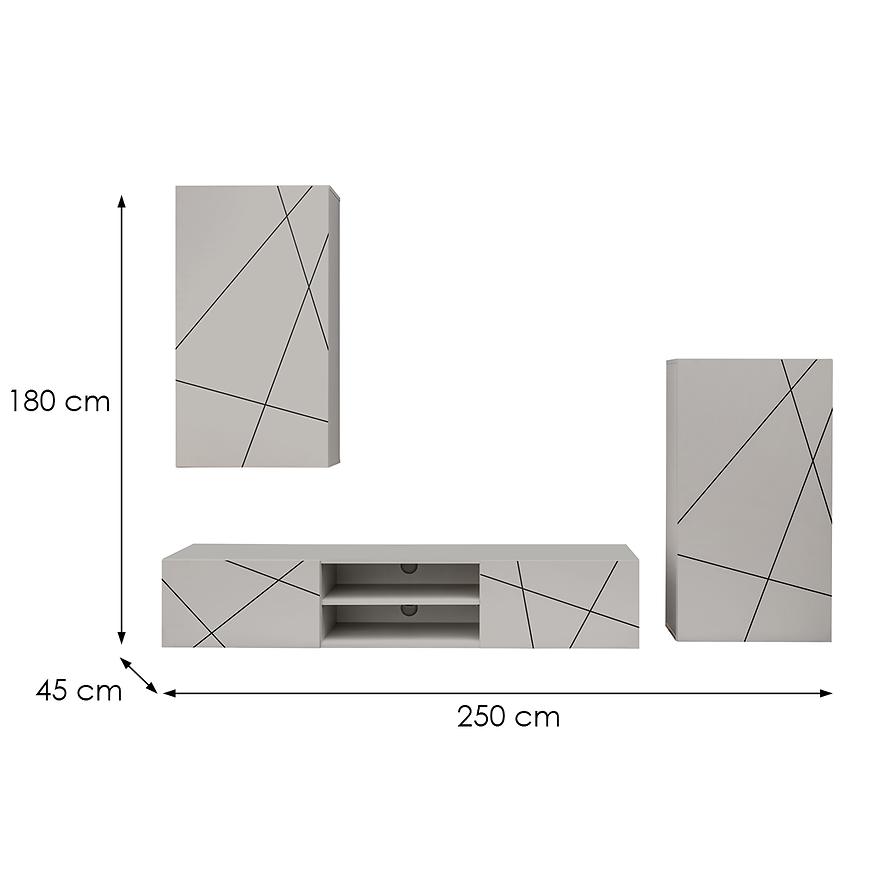 Meblościanka Geo II CC w kolorze kaszmir to stylowe i praktyczne rozwiązanie do nowoczesnego salonu. Dzięki szerokości 250 cm zapewnia sporo miejsca do przechowywania, jednocześnie nie przytłaczając wnętrza. Jasne, beżowe wybarwienie w macie tworzy ciepły i elegancki klimat, który łatwo dopasować do różnych aranżacji. Solidna konstrukcja z laminowanej płyty wiórowej gwarantuje trwałość i komfort użytkowania. To idealny wybór dla osób ceniących prostotę, funkcjonalność i nowoczesne wzornictwo.