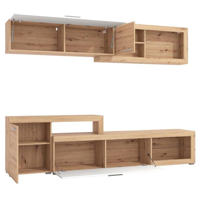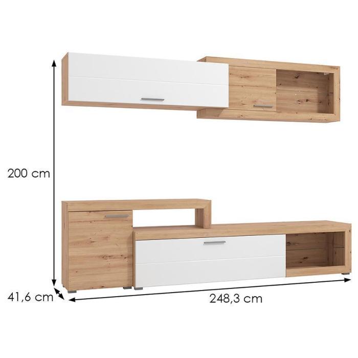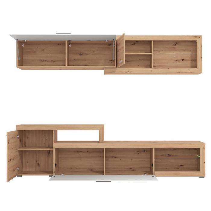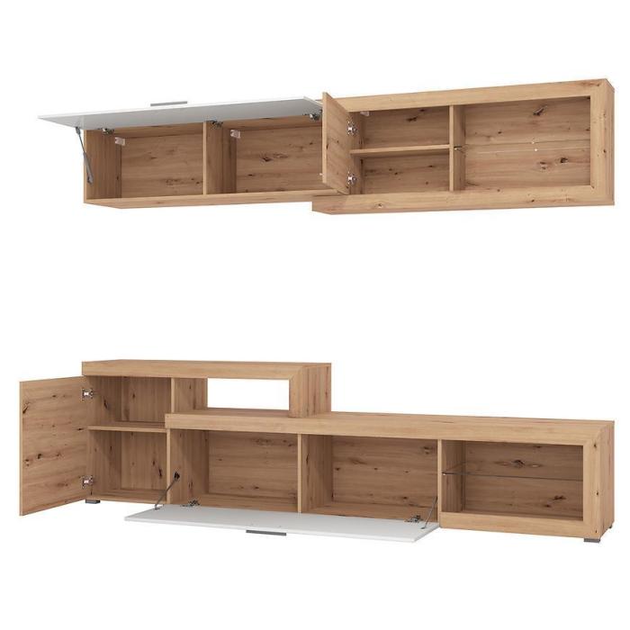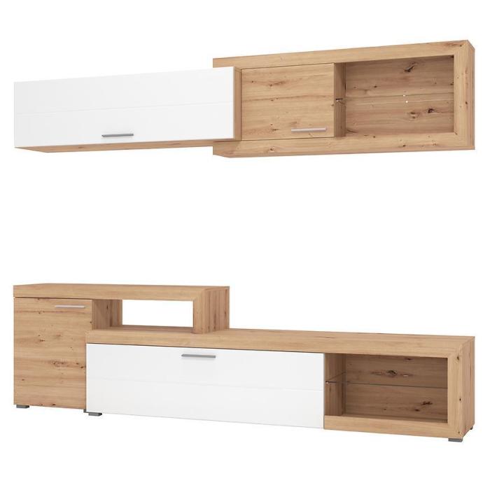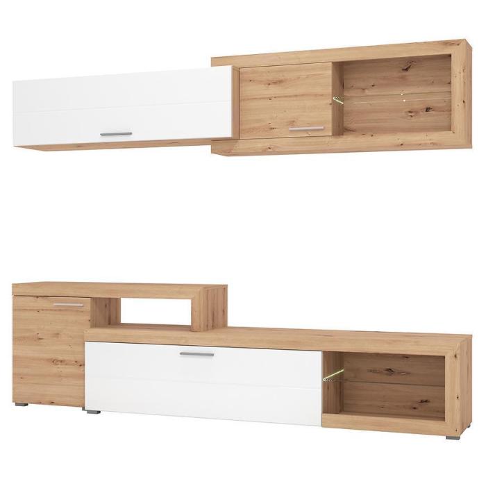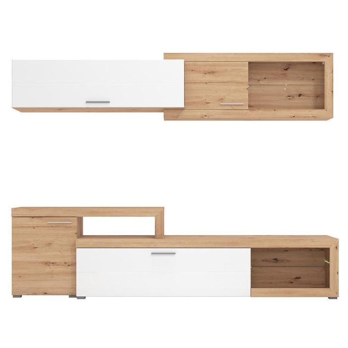 Jest to meblościanka, która wpasuje się w większość aranżacji nadając pomieszczeniu nowoczesny i elegancki design.