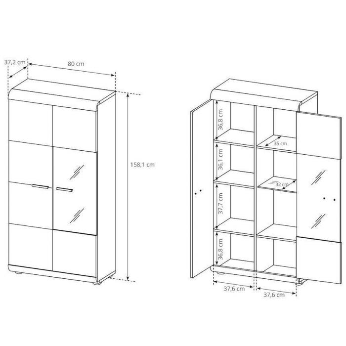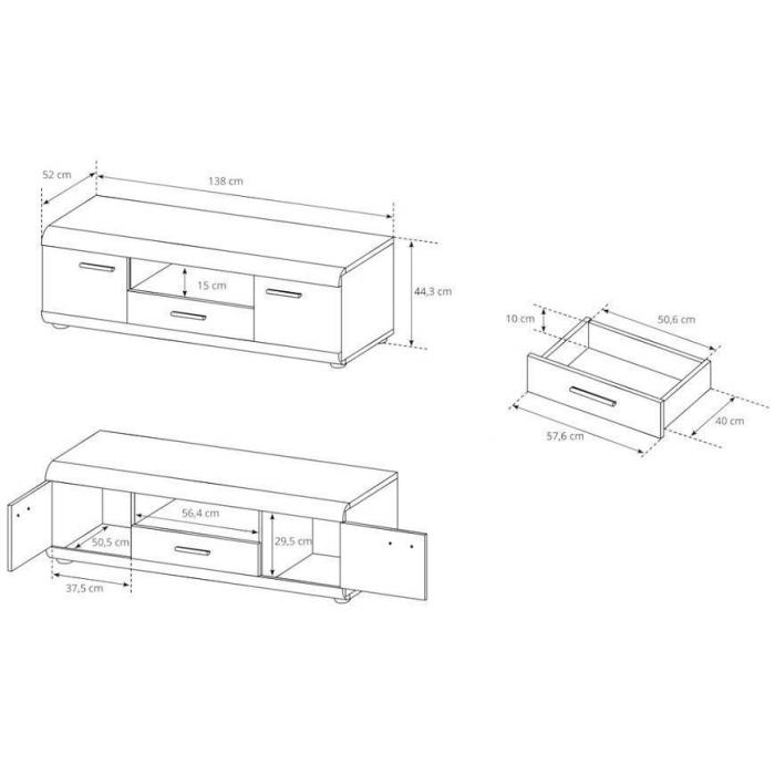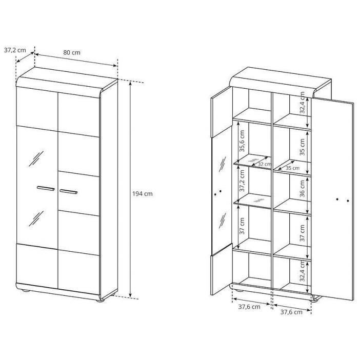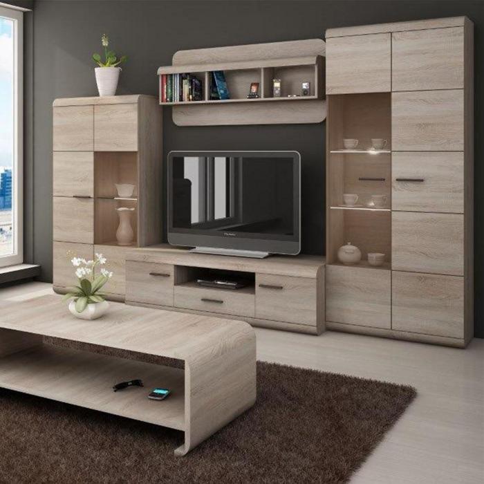 Zestaw oferuje szeroki wachlarz półek, szafek i schowków, które ułatwiają przechowywanie i utrzymanie porządku. Wysoka pojemność meblościanki pozwala na wyeksponowanie dekoracji, zdjęć czy pamiątek, jednocześnie zachowując schludny wygląd całego pomieszczenia.