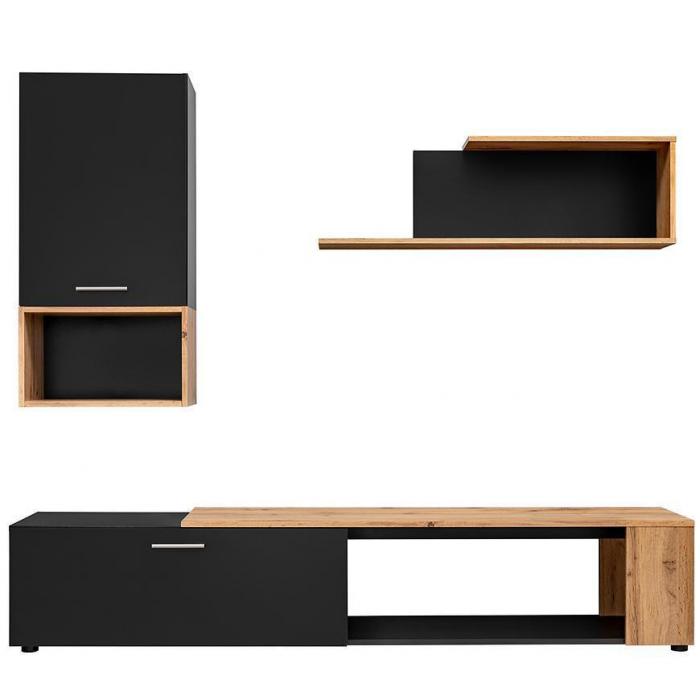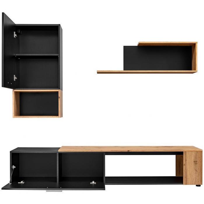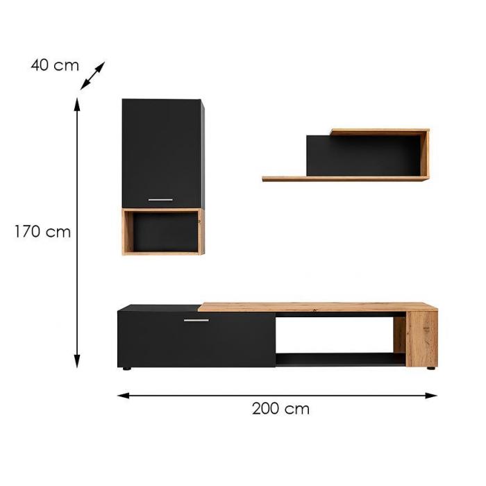 Jest to meblościanka, która wpasuje się w większość aranżacji nadając pomieszczeniu nowoczesny i elegancki design.