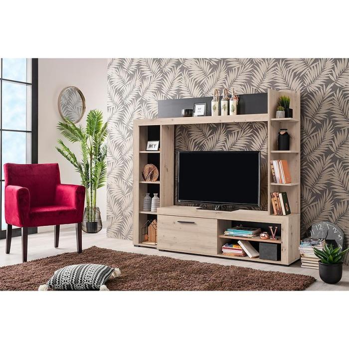 Jest to meblościanka, która wpasuje się w większość aranżacji nadając pomieszczeniu nowoczesny i elegancki design.