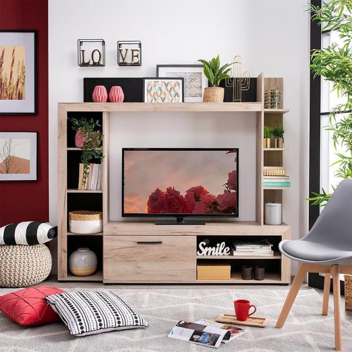 Meblościanka z serii Rubi to świetna propozycja do pokoju dziennego czy salonu. Jest niezwykle praktyczna oraz funkcjonalna. Wykonana z najwyższej jakości materiałów - płyty wiórowej laminowanej.