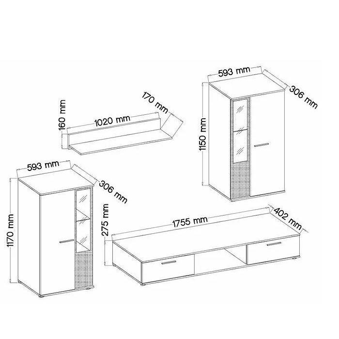 Meblościanka oferuje przestrzeń do przechowywania przedmiotów codziennego użytku i dekoracji, a jej wąska forma nie zabiera dużo miejsca. Dodatkowo istnieje możliwość doposażenia jej w oświetlenie LED, które można dokupić, co pozwala stworzyć atrakcyjny efekt świetlny i przyjemną atmosferę w pomieszczeniu. Produkt waży 74 kg i wymaga samodzielnego montażu, co ułatwia jego transport i dopasowanie do wnętrza.