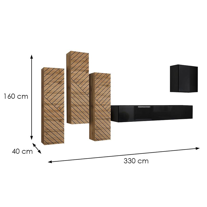 Meblościanka Switch to wyjątkowe rozwiązanie, które łączy funkcjonalność z eleganckim stylem. Z imponującymi wymiarami - 160 cm wysokości, 330 cm szerokości i 40 cm głębokości - zapewnia dużą ilość miejsca do przechowywania, eksponowania dekoracji i tworzenia wyjątkowej przestrzeni.