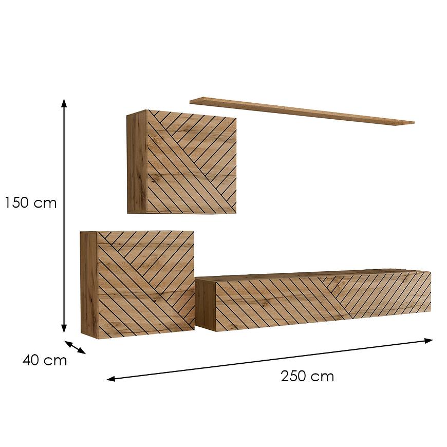 Meblościanka Switch to harmonijne połączenie funkcjonalności i estetyki, idealne rozwiązanie do nowoczesnych wnętrz. Z jej wysokością 150 cm, szerokością 250 cm i głębokością 40 cm wprowadzisz do swojego domu nie tylko praktyczne miejsce do przechowywania, ale także elegancką ozdobę.