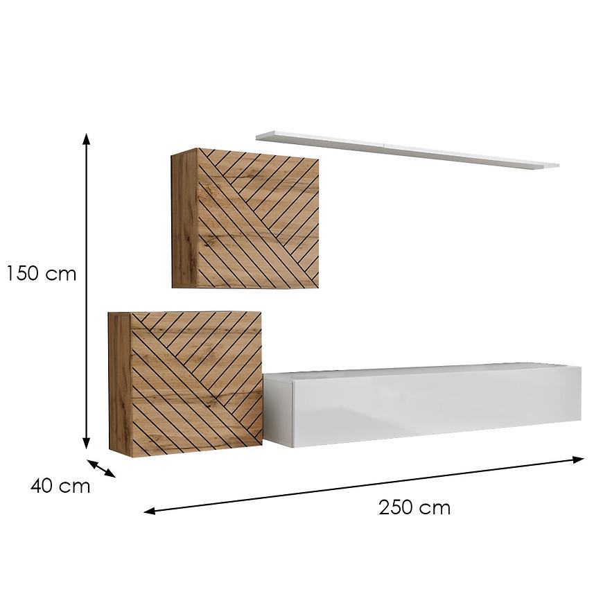 Meblościanka Switch to harmonijne połączenie funkcjonalności i estetyki, idealne rozwiązanie do nowoczesnych wnętrz. Z jej wysokością 150 cm, szerokością 250 cm i głębokością 40 cm wprowadzisz do swojego domu nie tylko praktyczne miejsce do przechowywania, ale także elegancką ozdobę.
