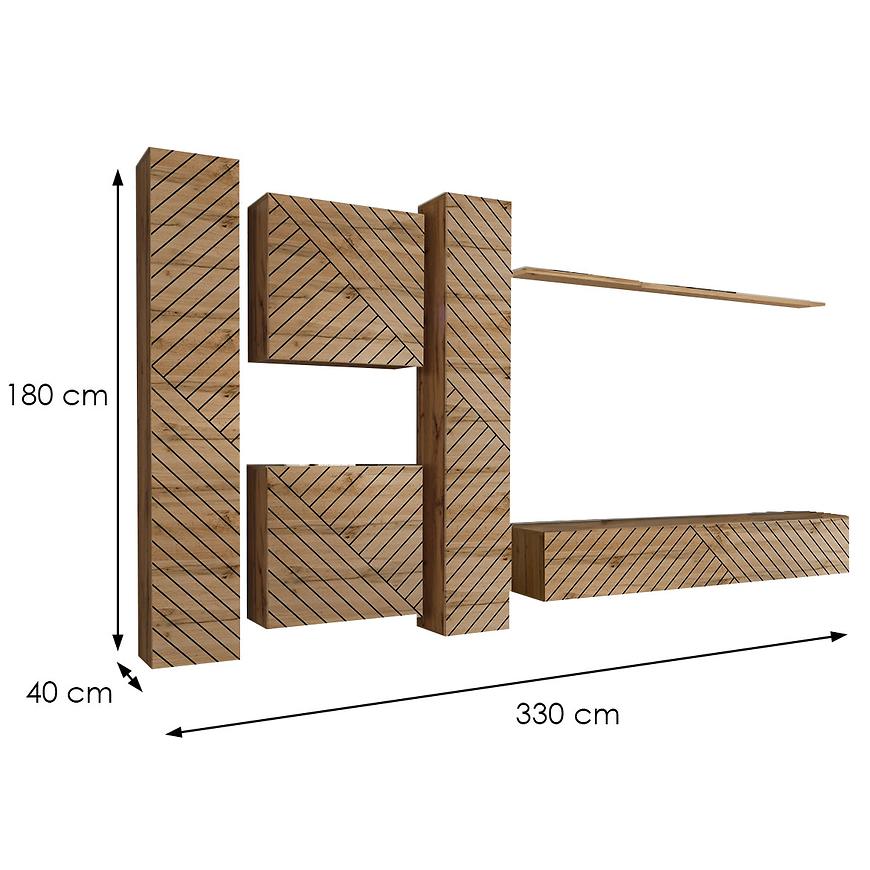 Meblościanka Switch VI to połączenie funkcjonalności i stylu, stworzone z myślą o tych, którzy cenią sobie elegancję i funkcjonalność w jednym. Z imponującymi wymiarami (180 cm,x330cm x40 cm) meblościanka nie tylko optycznie powiększa przestrzeń, ale także stanowi doskonałe miejsce do przechowywania i eksponowania Twoich ulubionych przedmiotów.